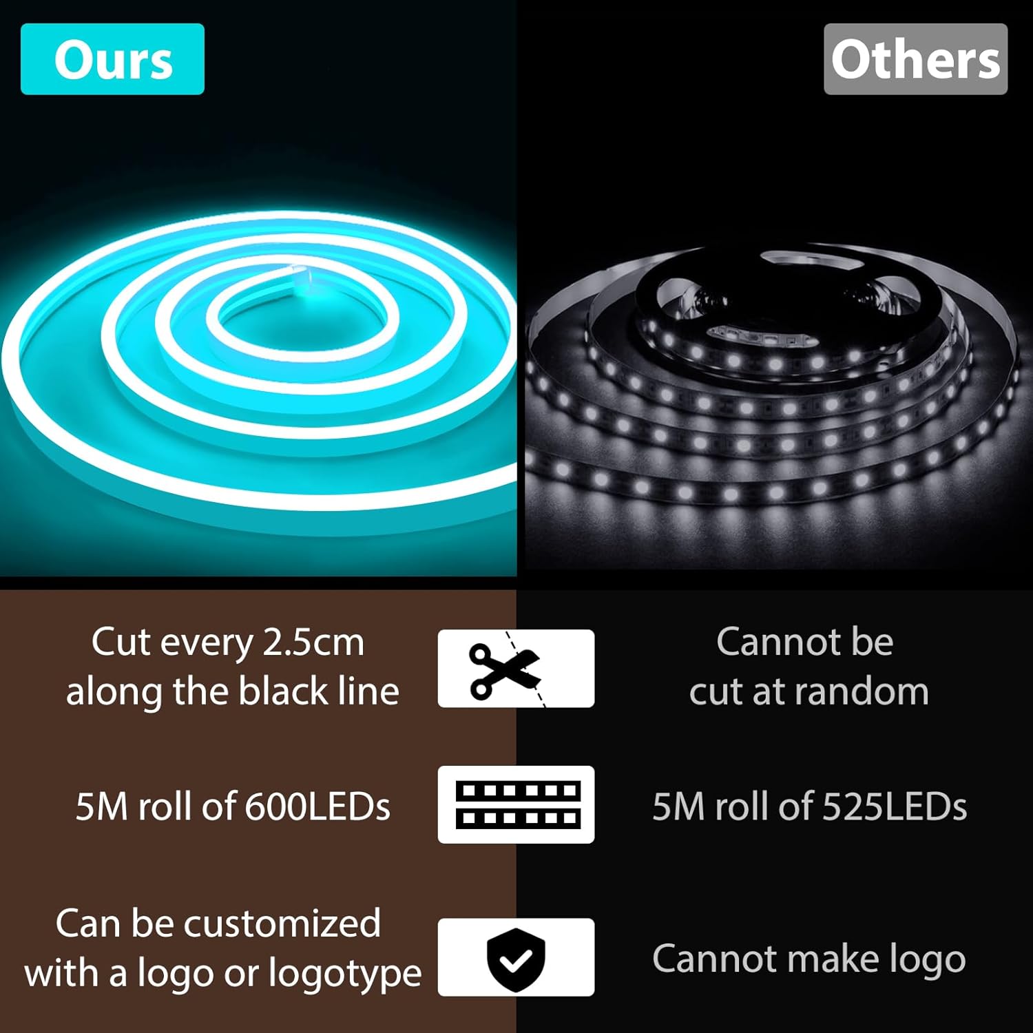 - Flexible and Cuttable: The 16.4ft/5m waterproof LED rope light is bendable, allowing you to create custom shapes and designs, and can be cut to desired lengths.