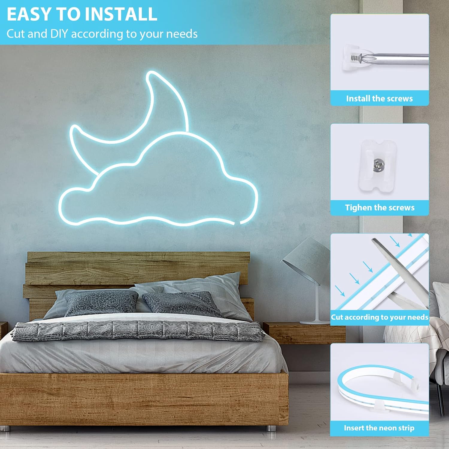 - Easy Installation: With its flexible and cuttable design, this neon rope light can be easily mounted or secured using clips or adhesives (not included).
