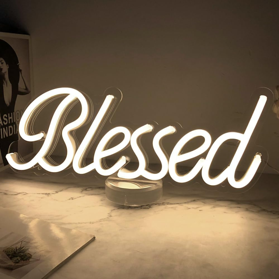 Eurotex Beautiful Blessed Neon Sign, Wall Decor, Neon Signs for room (8x14 In)