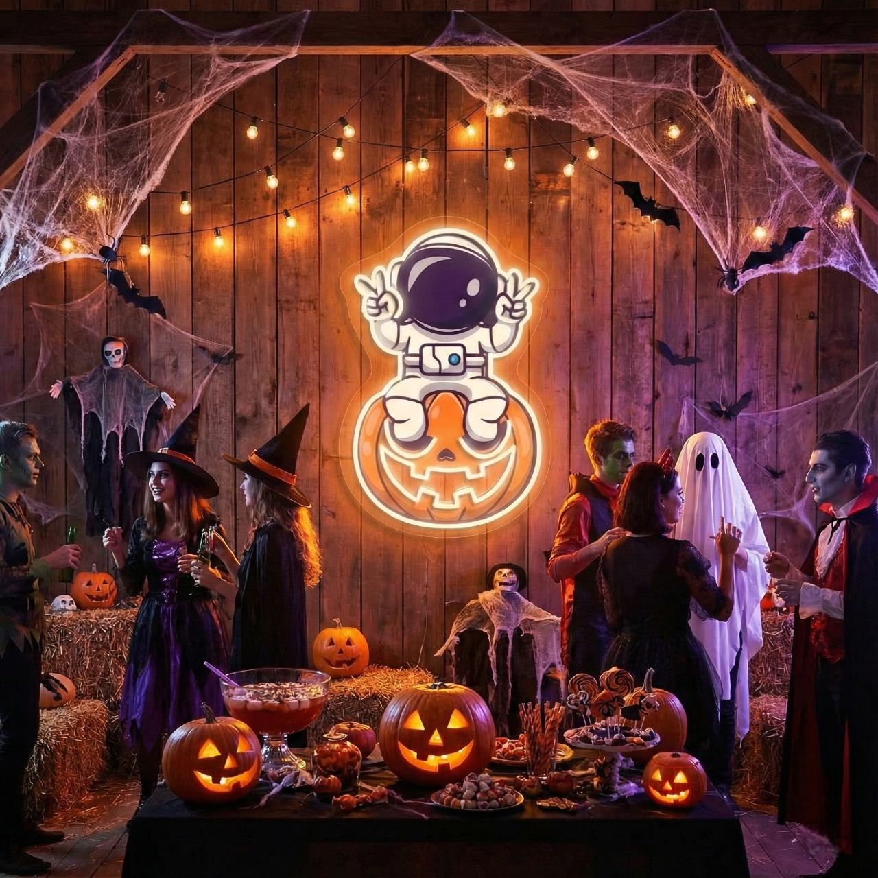 Custom UV Print Astronaut Halloween Neon Signs | Personalized LED Name Lights for Room
