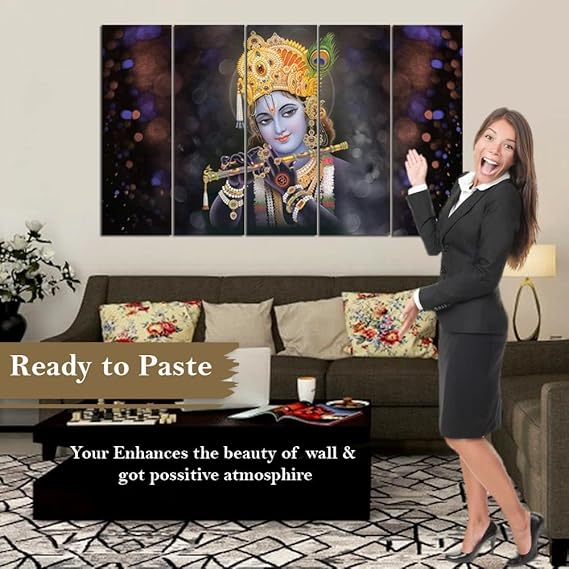 Eurotex Beautiful Krishna with flute Big Size Wall Painting for Living Room, Bedroom, Home, Office, Hotels (Krishna -16)