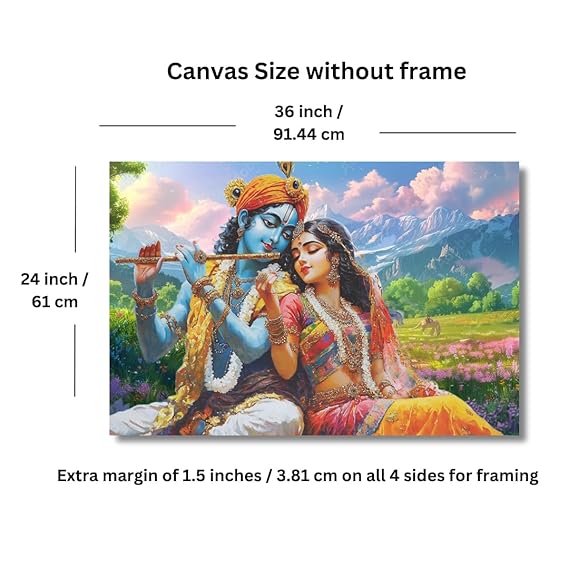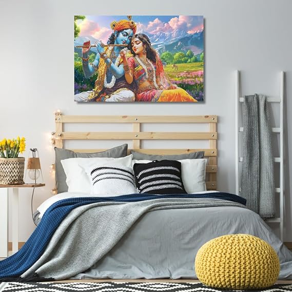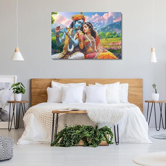 - PREMIUM CANVAS: High-quality wrapped canvas print featuring a vibrant Radha Krishna divine artwork perfect for wall decoration