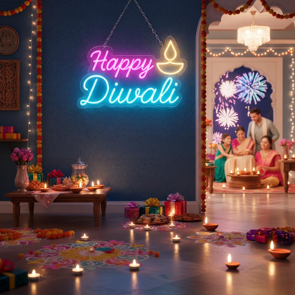 LED neon wall décor is the modern and stylish way to illuminate your festive season. Forget traditional string lights; choose a Diwali neon sign for a vibrant and enduring glow.