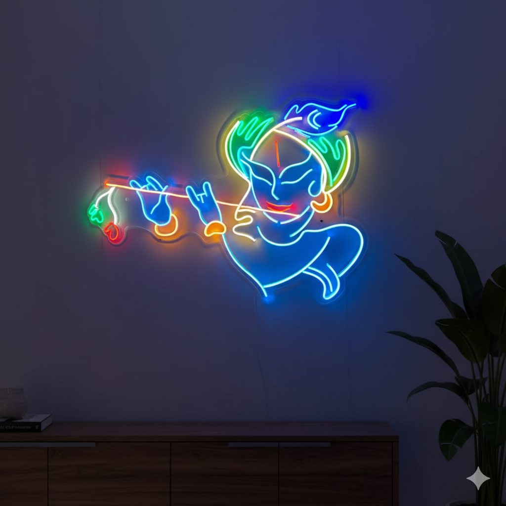 Eurotex Shree Krishna Neon Sign, Wall Decor, Neon Signs for room (30x20)