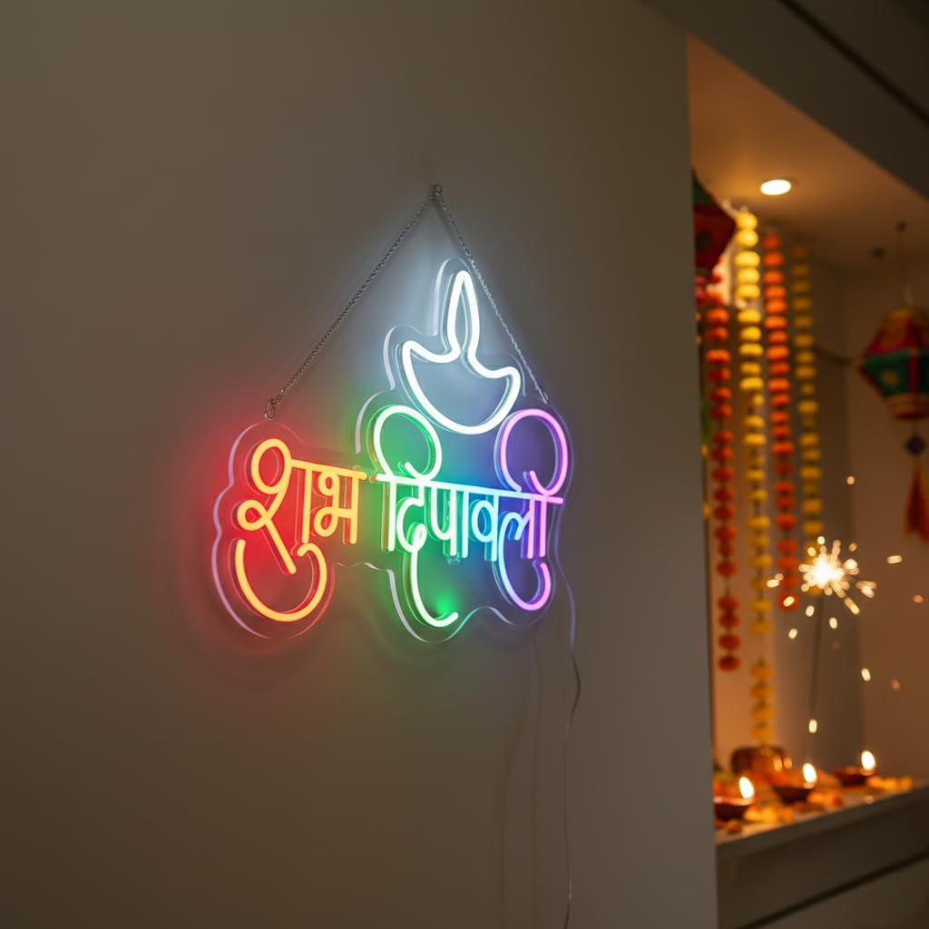 LED neon wall décor is the modern and stylish way to illuminate your festive season. Forget traditional string lights; choose a Diwali neon sign for a vibrant and enduring glow.