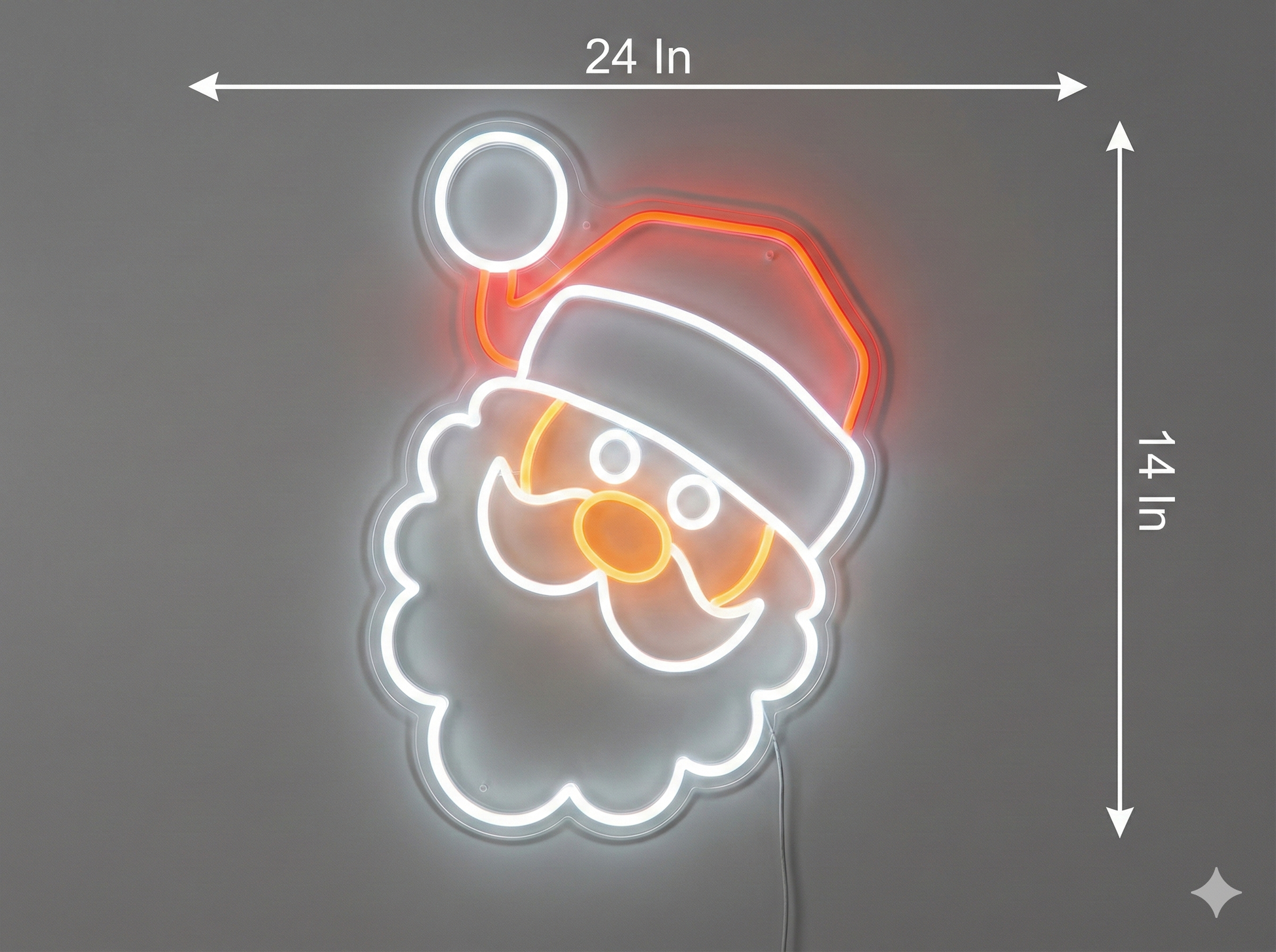Santa Face Neon Sign | Merry Christmas Sign Neon (24In x 14In)