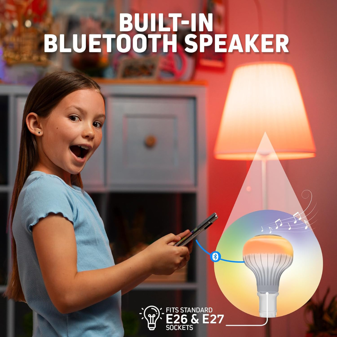Wireless Speaker Bulb: This Bluetooth bulb is a wireless, multi-color, energy-efficient smart LED bulb. Easily control the RGB light color and music playback with the 24-button remote. The effective control distance of the wireless bulb speaker reaches 33 ft. The Bluetooth speaker LED bulb works with all Bluetooth devices (iOS/Android/Windows).