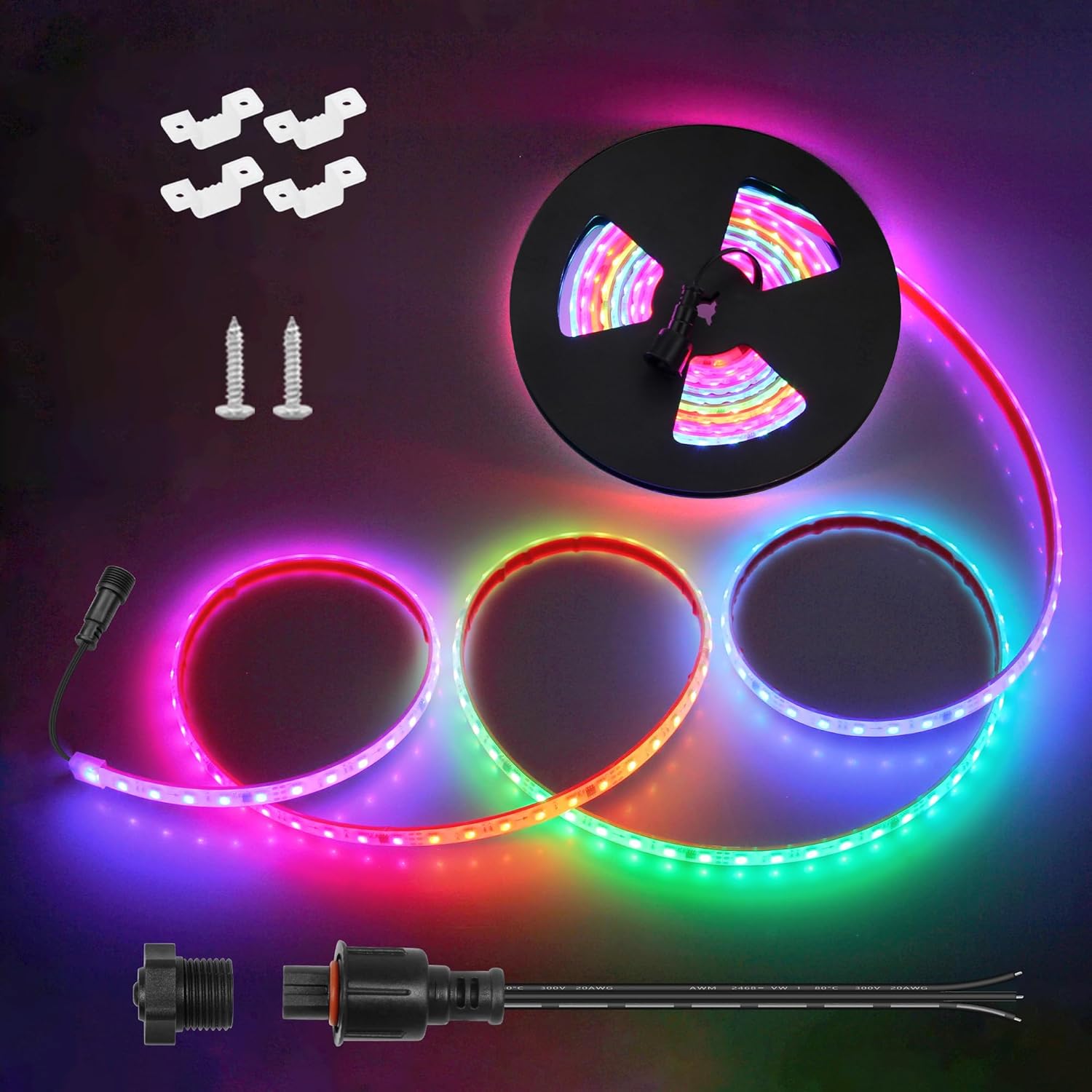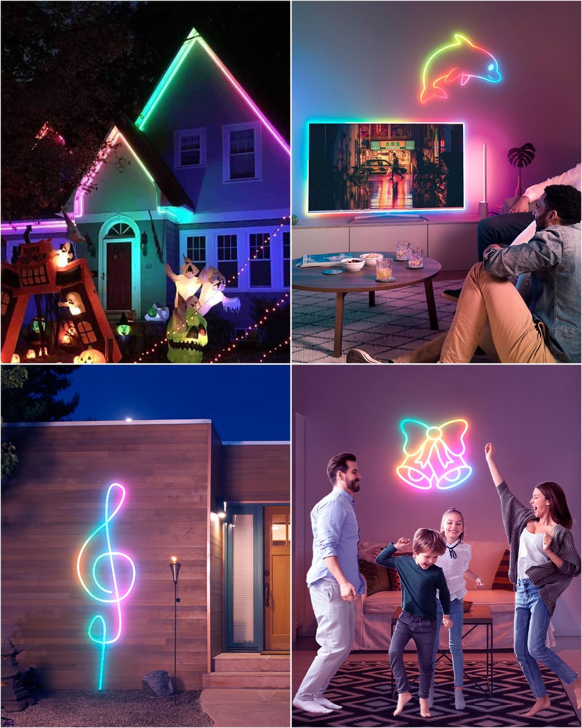 Good Material: LED Pipe lights are lengths of flexible PVC tubing inside of which is miniature led bulbs. LED light for decoration has a built-in fuse design so you can rest assured that your lights will work well. The durable plastic coating on the LED cord can withstand all the elements including wind, rain, and even harmful UV rays. The decorative lights for indoor décor are waterproof so you can leave them outside all year round without worrying about damage.