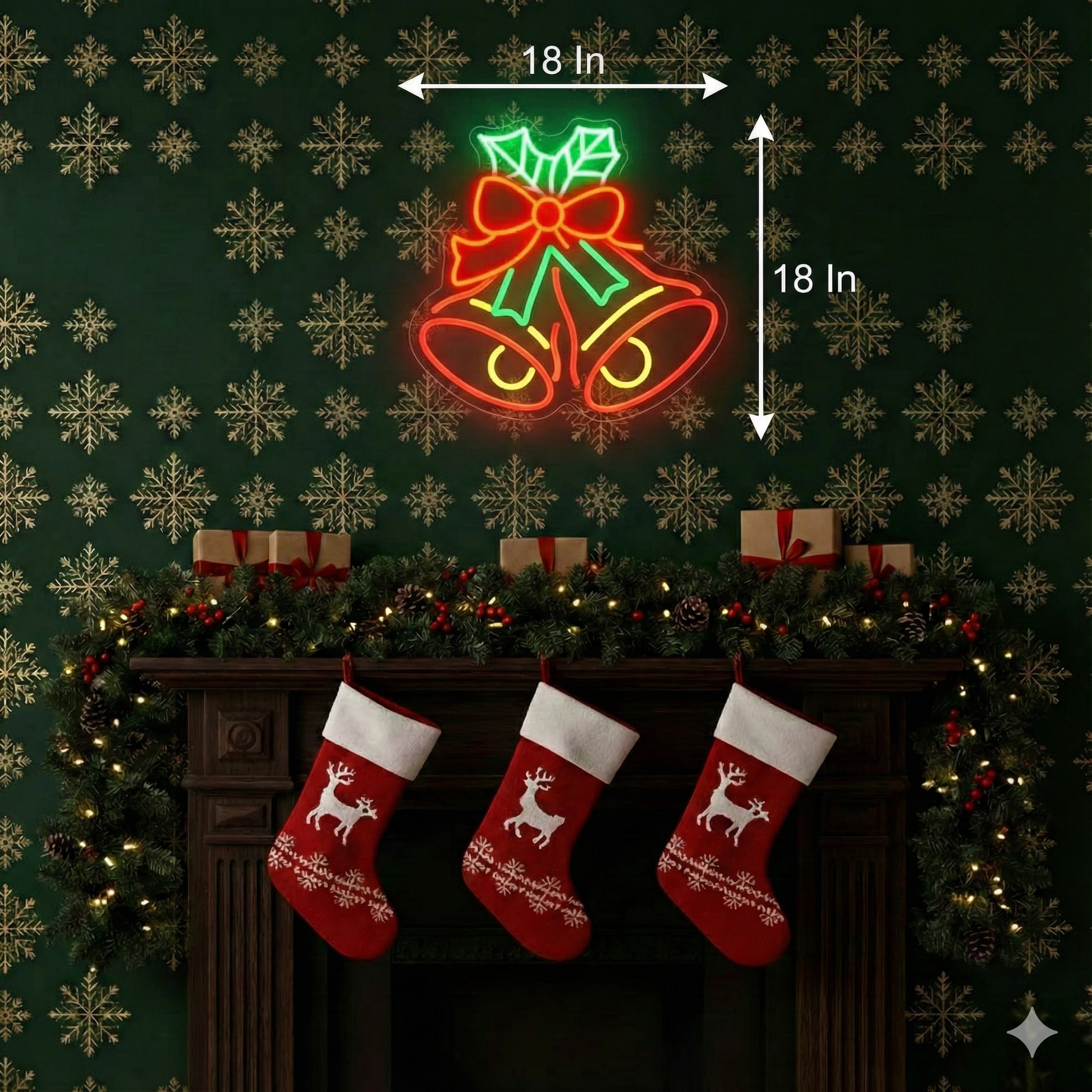Jingle Bell Red Christmas Neon Sign | Neon Sign Merry Christmas (18In x 18In)