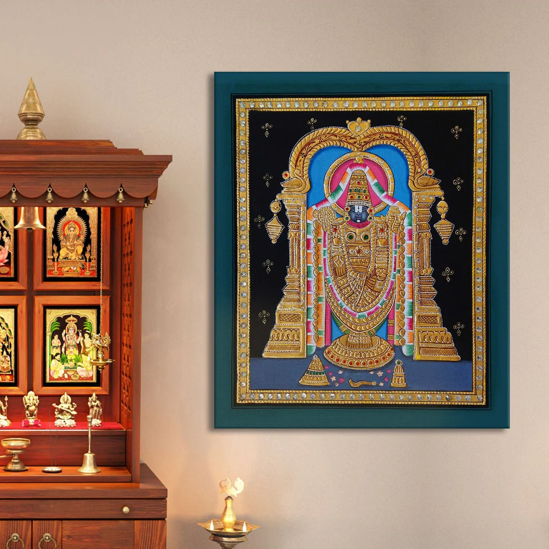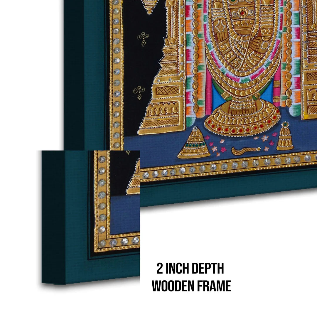 Shree Tirupati Balaji, Tanjore Art, Framed Abstract Canvas Wall Art for Bedroom